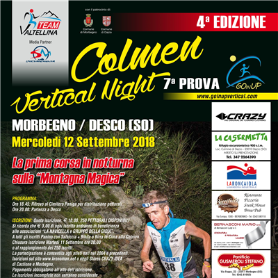 Gara di sola salita in notturna con partenza e arrivo in cima alla Colmen di Dazio - DISLIVELLO POSITIVO 650m – 7^ Prova Circuito GOINUP.